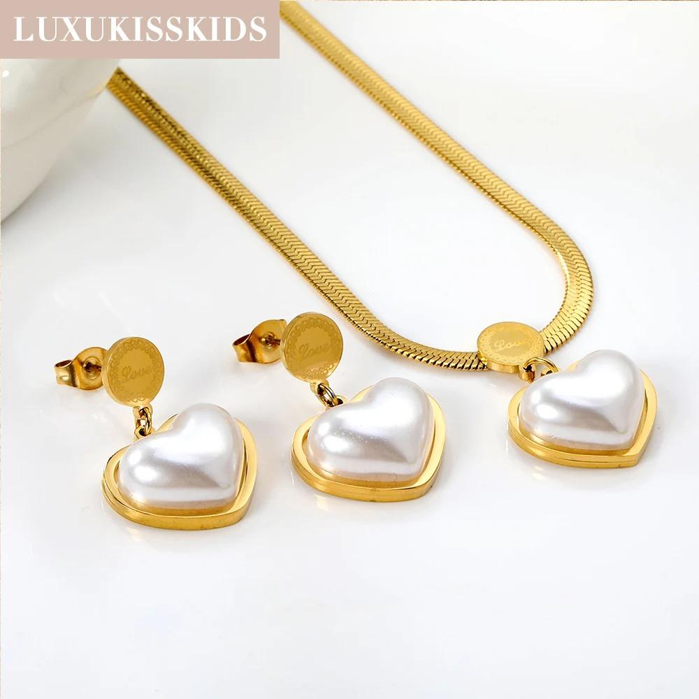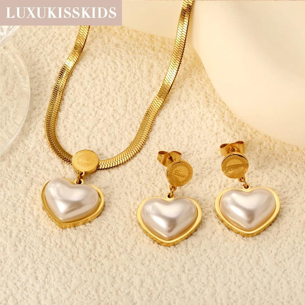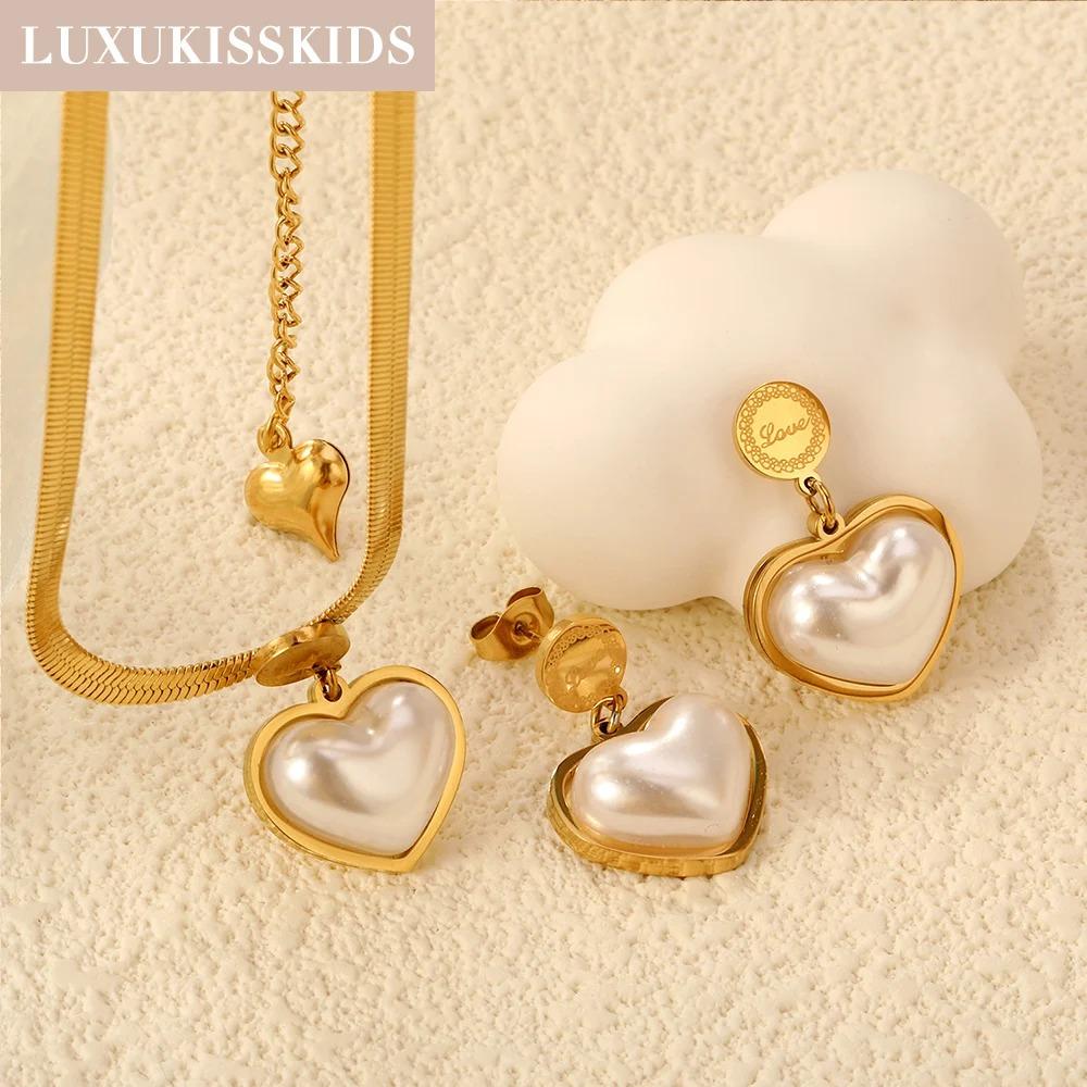 ضيفي لمسة من الرقي لإطلالتك مع طقم مجوهرات نسائي فاخر من LUXUKISSKIDS، يجمع بين قلادة قلب أنيقة وأقراط مطابقة باللون الذهبي، مثالية للحفلات والمناسبات الراقية.