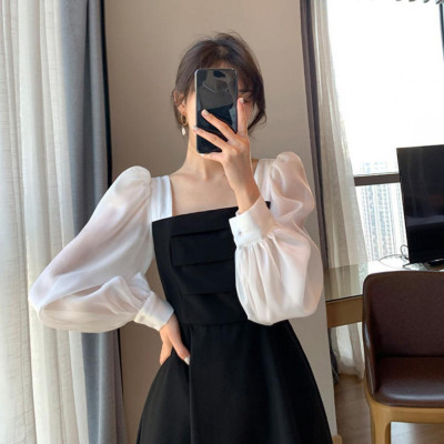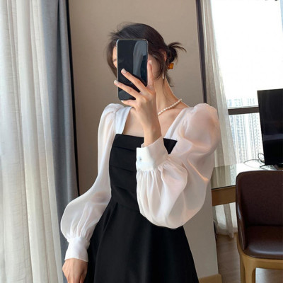 - الألوان: الأسود مع أكمام بيضاء شفافة